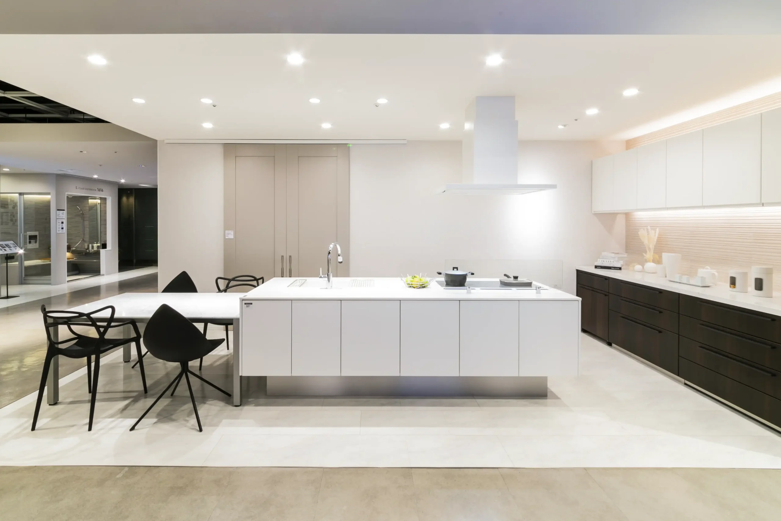 水廻りとインテリア関連を中心としたショールームになっており、浴室やキッチンだけでなく、内装や外装などの素材サンプルも豊富に展示しております。マンションの一室をイメージした空間は、リフォームやリノベーションの参考になりますので、リフォームやリノベーションをご検討の方はお気軽にご来場ください。事前にご予約いただきますとスムーズにご案内が可能です。
