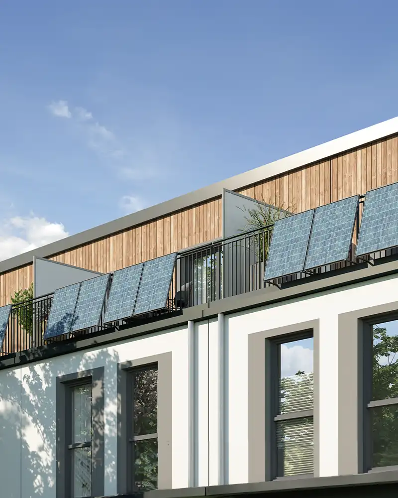太陽電池モジュールから取り入れた光は、そのままでは家庭用電力としては使用が出来ないため、パワーコンディショナーという装置で変換します。変換された電流は分電盤を通り、家庭内のあらゆる場所へと供給されます。昨今では、屋根以外の壁などに太陽電池モジュールをつける方法も注目を浴びています。